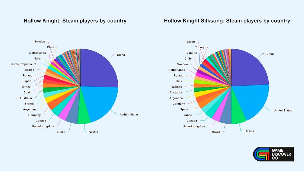 #2 - Silksong has a diverse country base, if similar to OG Hollow Knight