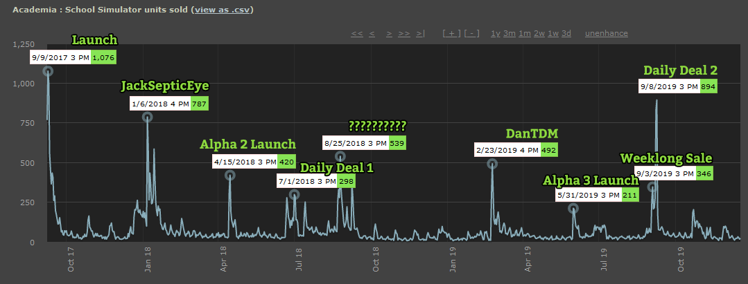 Of course, one of the reasons for the spikiness for Academia is the ability to put your game in sales, thus triggering wishlist emails and alerts for Steam players.