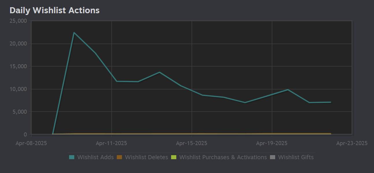 Wishlists are led by the U.S. with 31%, however. It’s part of a trend GDCo has seen, where China seems to under-wishlist compared to demo & sales numbers.