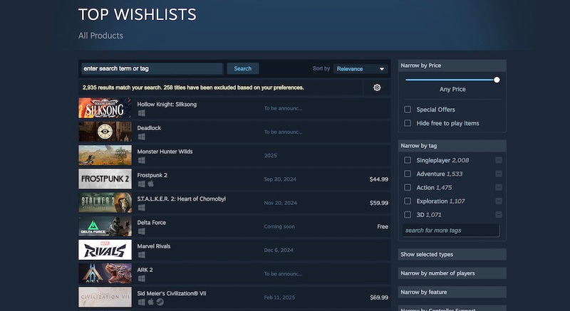 So, if you’re an unreleased Steam game of a certain size, you appear on a special Steam page ranking, called ‘top wishlists’. And one question we’ve been asked is - how many do you need to chart in or top this list? Well, we’ve got an answer…