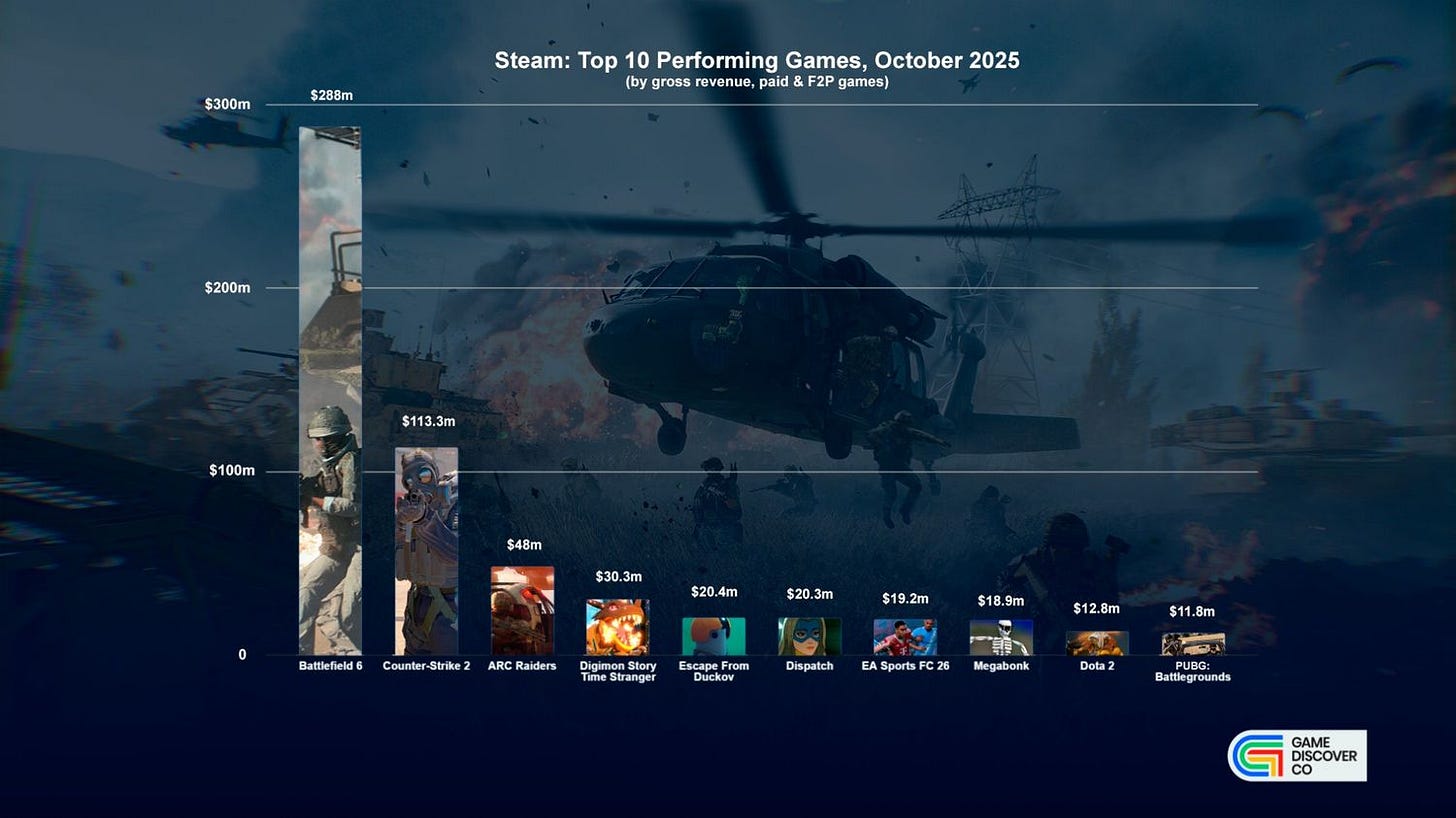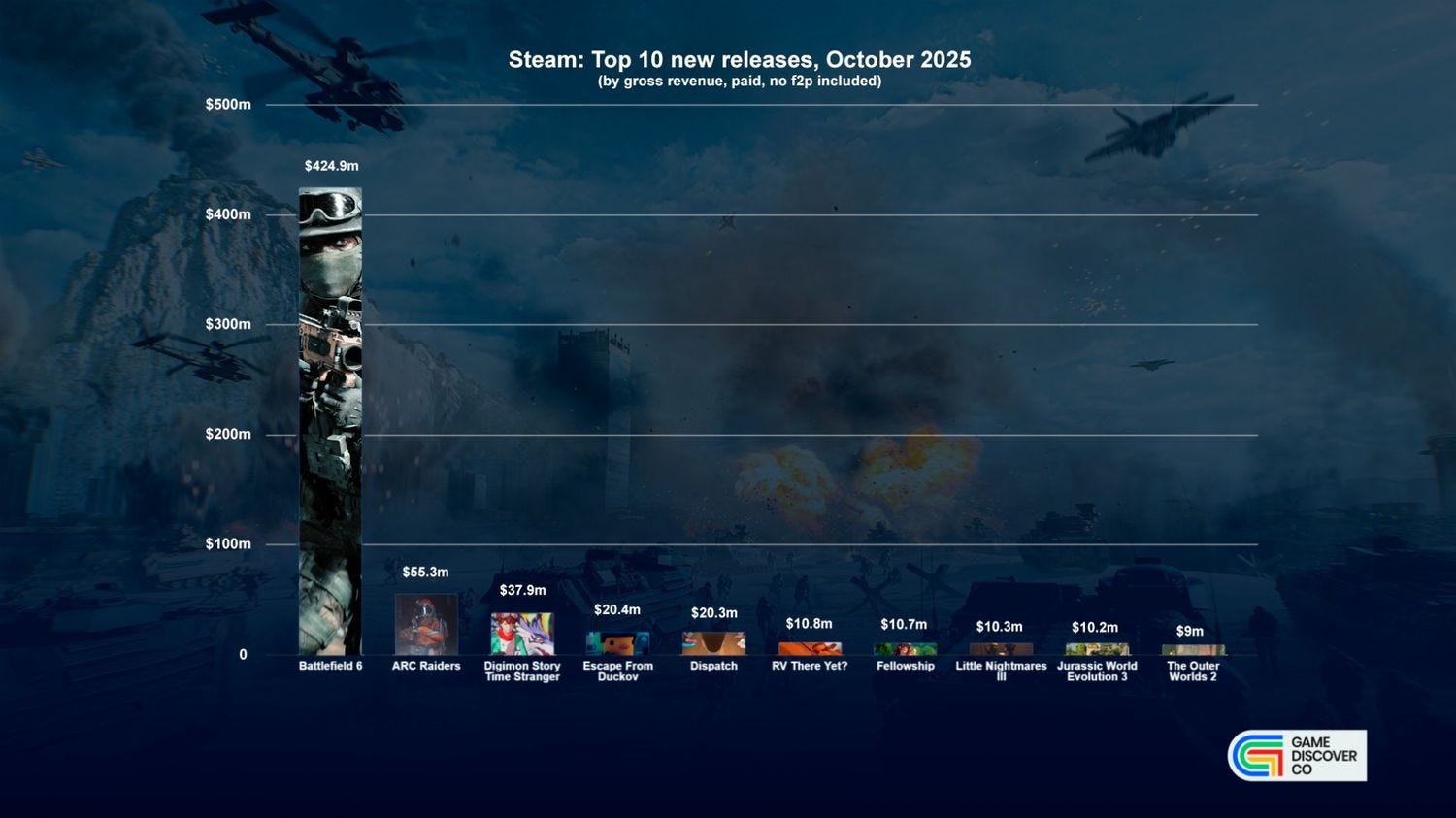New week, and new opportunities to poke at numbers? We’ll take it, thanks to October 2025’s new Steam and console releases, dominated by EA’s Battlefield 6, but including all kinds of other interesting games. We have at it below…