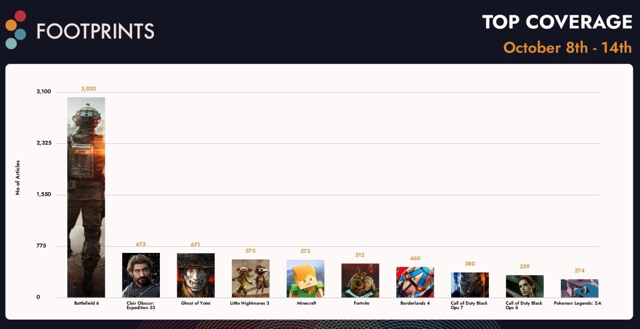 The latest Footprints.gg ‘trad media’ charts (above, put together by our friends at ICO) show EA’s Battlefield 6 - which sold 7m units in its first 3 days - absolutely dominating the charts. Also in there: Clair Obscur (5m copies!), Ghost Of Yotei, Little Nightmares 3 & more…