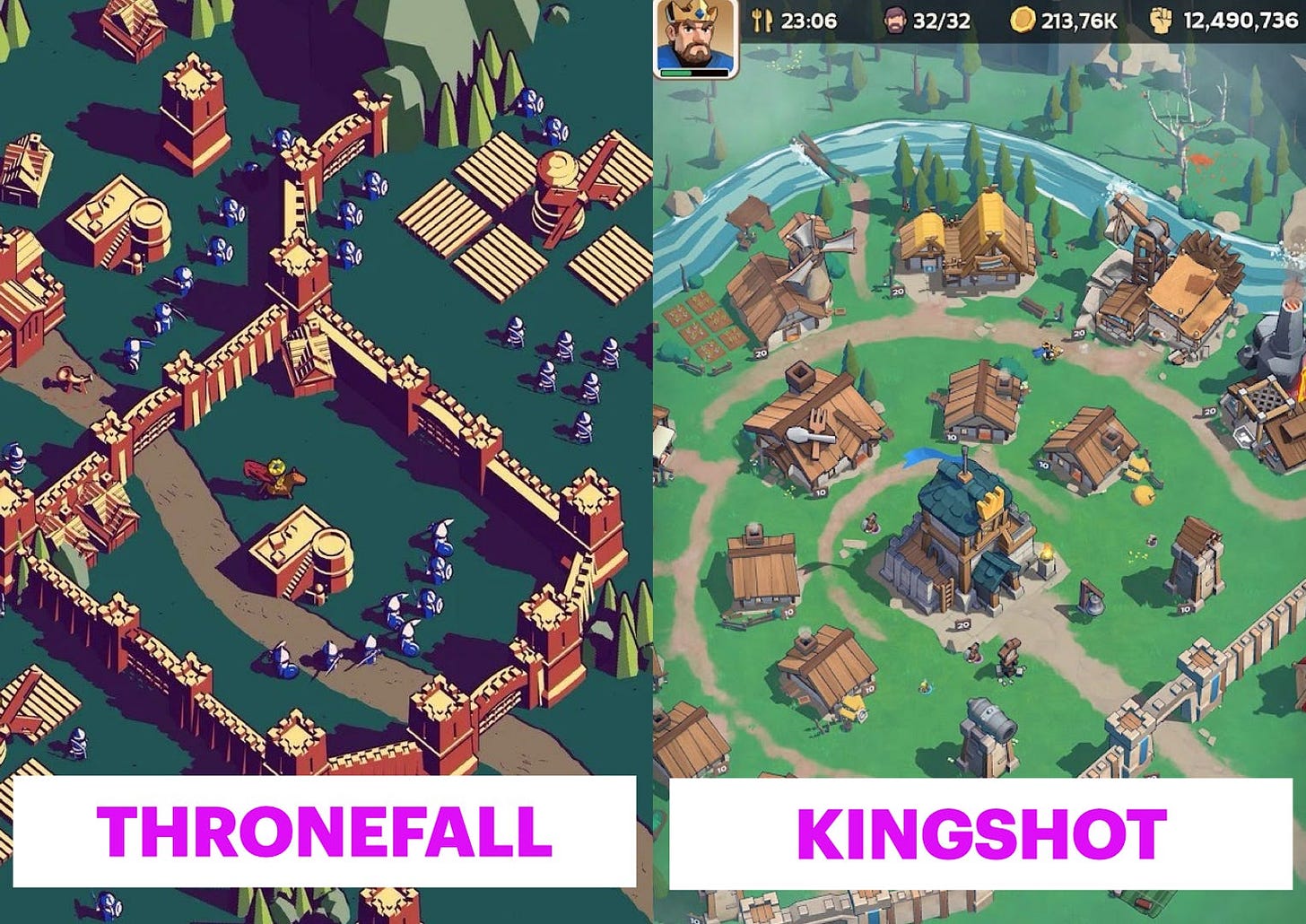 And Kingshot - which Lancaric notes should gross ~$60m+ in August and is in the Top 15 in SensorTower’s mobile revenue charts - clones another game as its upfront ‘hook’. That’s Grizzly Games’ stripped-down build/defend PC game Thronefall, which GDCo covered back in Oct. 2023.