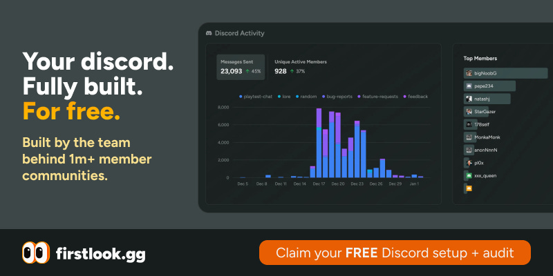 We design and build high-performing game Discords from scratch. Get custom onboarding funnels, role systems, playtest tracking, and feedback capture built by the elite operators behind 1M+ member communities.