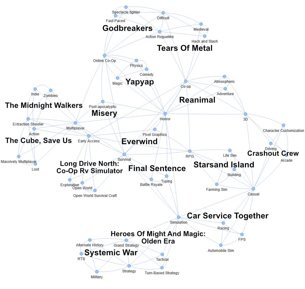 Thanks to Michael Chan for cooking up the above viz, based on the Top 5 Steam tags for the Top 15 ‘new WLs’ games. Games we didn’t discuss: Systemic War is a modern grand-strategy game, Crashout Crew is physics-based co-op mayhem from Peak’s co-devs, and Midnight Walkers is a zombiegrim extraction shooter.