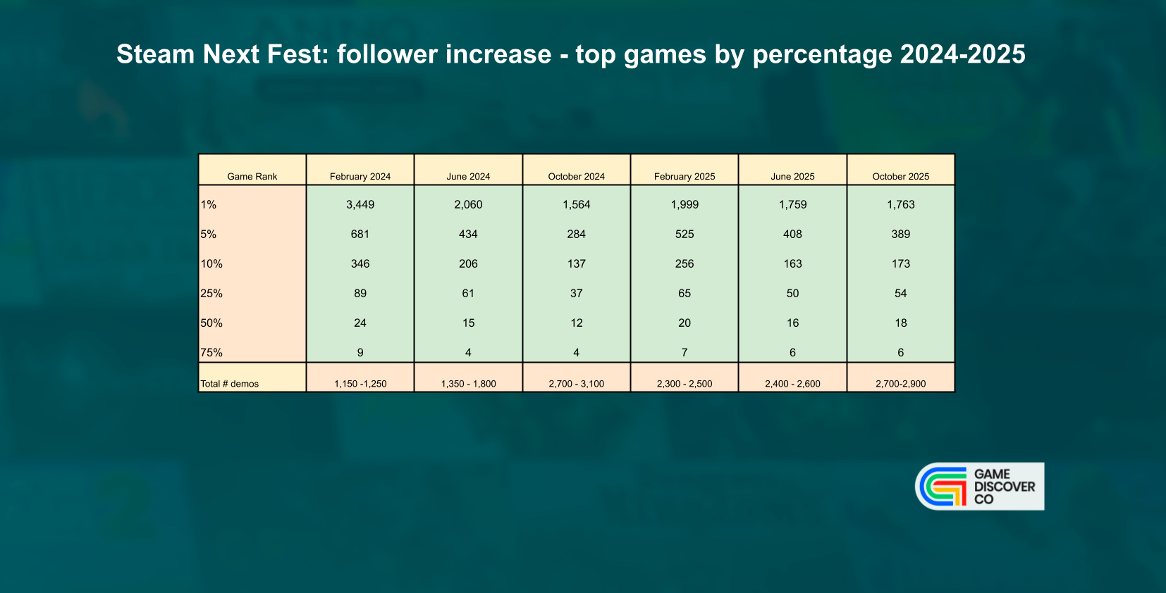 Yes, GDCo has been covering Steam Next Fest demo trends for ages. Here’s our pieces from June 2025, Feb. 2025, Oct. 2024, June 2024, February 2024, Oct. 2023, June 2023, and February 2023, if you’d like to rewind. But what’s great? Everyone’s monitoring of Next Fest - which had ~2,900 demos this time - has been getting more sophisticated.