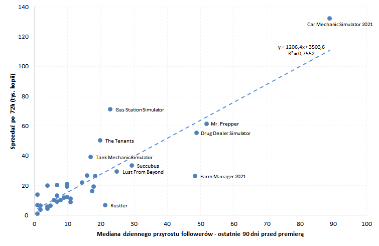Nonetheless, with this data set, he found that ‘median daily Steam followers added in the 90 days up to release’ had the best (0.87) correlation to sales for PlayWay - even better than wishlists! Which is neat, since we can all see Steam follower counts for all games.
